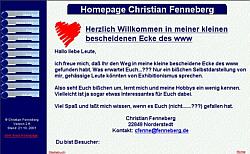 Im Mai 2000 habe ich mir dann www.fenneberg.de als Domain gesichert, mein Bruder hatte leider das Nachsehen... Einer fängt an....... und natürlich haben Felix und Ralf Peter nachgezogen und ihre eigenen Domains gesichert, und zwar unter: www.felix-bollin.de und www.rfenne.de. |