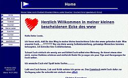 Wann Version 2 ins Netz gegangen ist, kann ich nicht mehr genau sagen. In dieser Version habe ich eigentlich meine Homepage entwickelt (Struktur und Inhalte). Nach und nach wurden dann auch Counter und Gästebuch eingebaut. (Designed mit NetObjects Fusion 4 und 5) |
