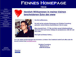 Die erste richtige Seite ist Ende Juli 2000 nach einem Dombesuch mit Freunden, auf dem ich allen erzählt hatte: “Ich habe jetzt eine Homepage” und alle sagten: “Oh, dann können wir morgen ja mal gucken” in Nachtschicht bis ca. 4.00 Uhr morgens ins Netz gegangen. (Designed mit NetObjects Fusion 3.0) |